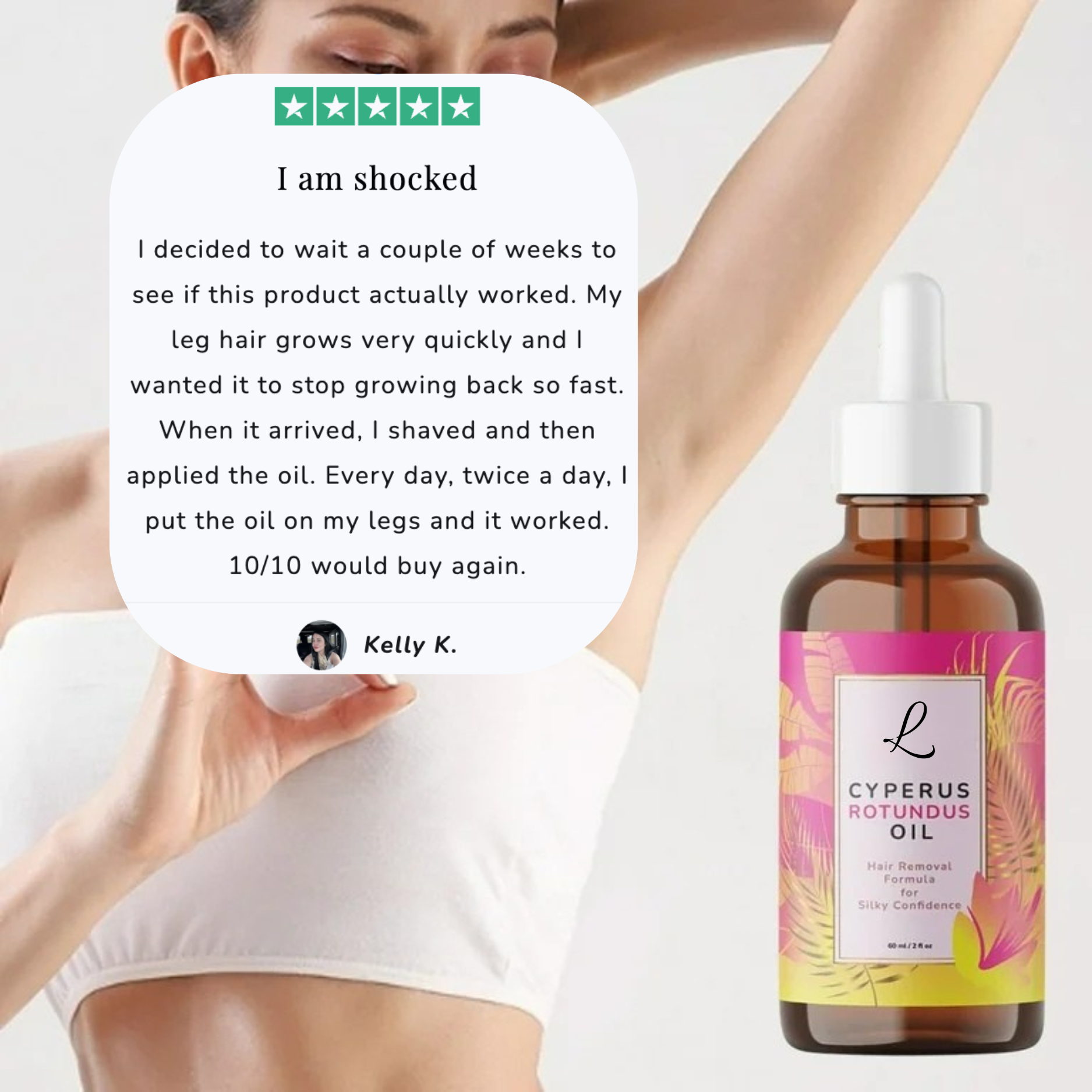 Absolutely love this oil! From the first application, I noticed how lightweight it feels no greasy residue, just smooth, soft skin. It absorbs quickly and has a soothing, natural scent that makes it feel like a mini spa treatment every time I use it. After a few weeks, I started noticing a real difference in hair regrowth it’s coming in slower and softer, which makes hair removal so much easier. I also love that it works for all skin types and doesn’t irritate my sensitive skin at all. It’s moisturizing, calming, and feels so nourishing. Honestly, this has become a permanent part of my self-care routine and I can’t recommend it enough!