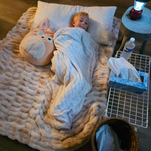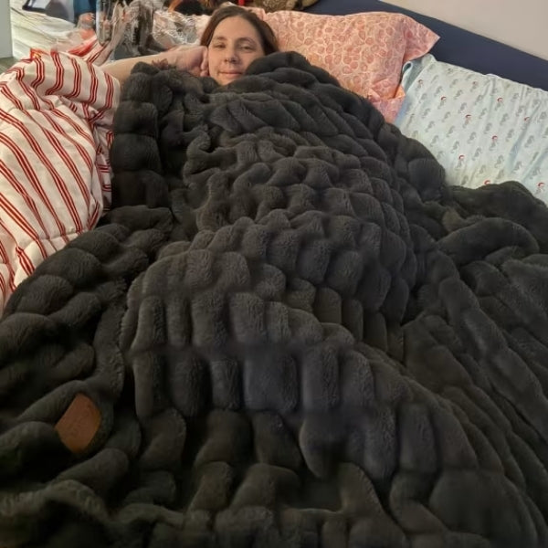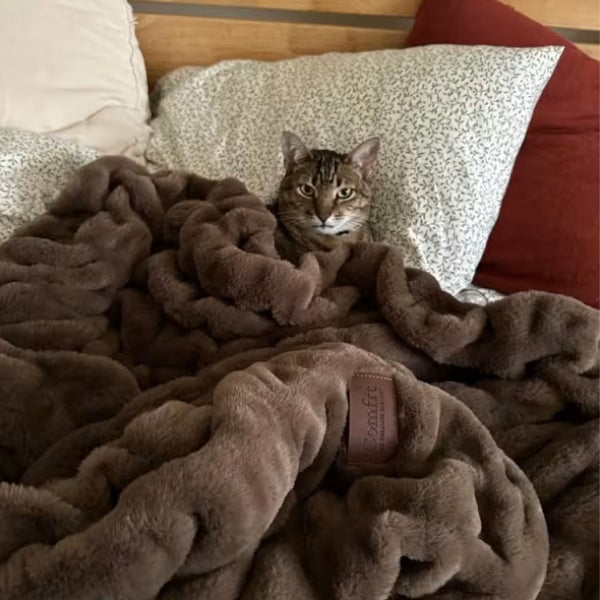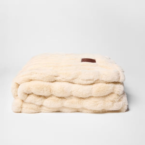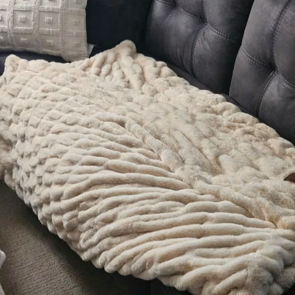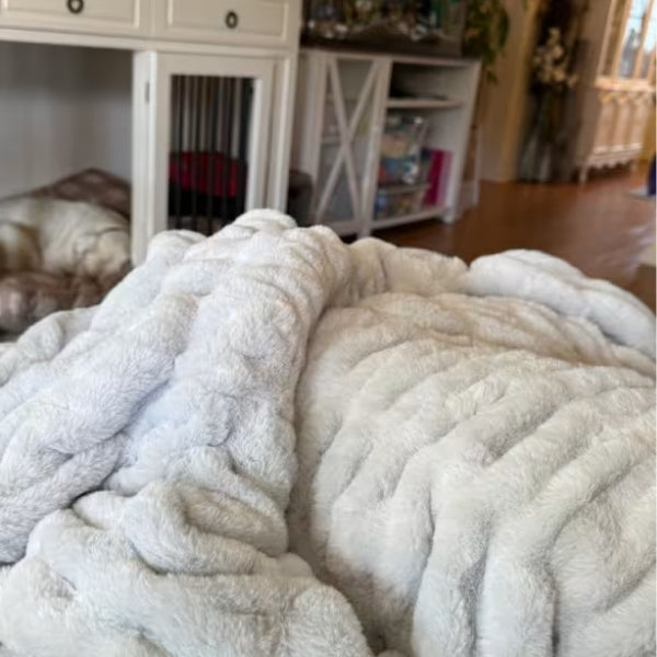 Machine wash cold on gentle cycle (we recommend placing it in a mesh laundry bag for protection). Hang to dry, do not put in the dryer. Once dry, give it a gentle shake and fluff with your hands or a soft brush to restore that cloud-soft texture. Do not bleach, iron, or dry clean. It stays perfect wash after wash.